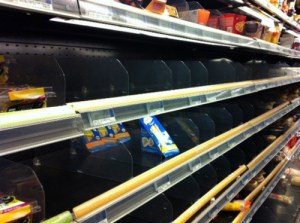 Once off the Metro, I made my way into the Franprix to find dinner. And holy crap, it was like Armageddon in there. Packed. Empty shelves. People reaching for the last one of pretty much everything in the store. Because it’s one of the few places open on Sunday, everyone was scrounging the almost-empty shelves for dinner.