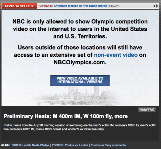 So welcome to my life for the next two-plus weeks. Welcome to a sample of the utterly stunning U.S. Olympic coverage that U.S. citizens who live abroad can watch thanks to Olympic broadcasting rights.