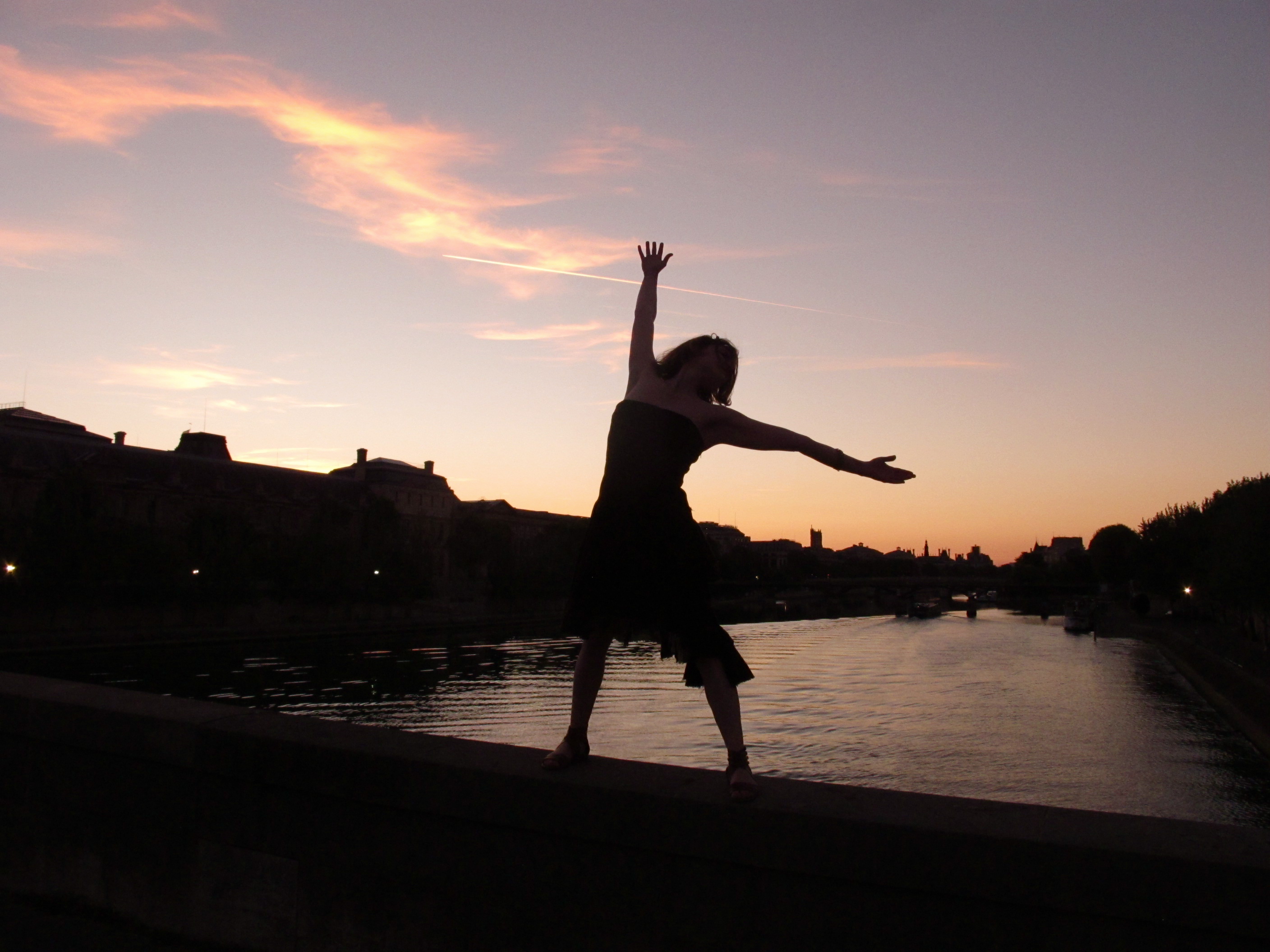6 to 6:45 am: Walk along the Seine, Jenna: standing on top of the world (Photo courtesy of parischeapskate.com)