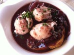 - Oeufs en meurette: poached eggs in a red wine sauce on a big garlic crouton. Regional specialty. You want this.