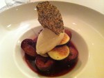 - Poached figs with a red wine sauce, vanilla bourbon ice cream and a sesame cracker
