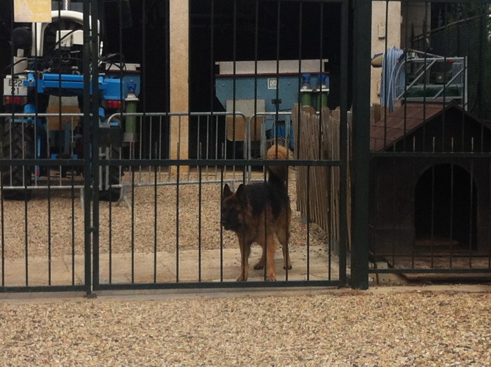 A very vigilant guard dog, apparently making sure no one steals the family grapes.