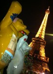 Later, I indulged in my favorite Paris pleasure of all: a late-night Vélib around the city, with the first stop at La Tour Eiffel. I’d planned on bundling my sore throat and I up and sitting on the grass to watch the 11 pm light show, but when I got there I found something interesting: Buddy Bears, 140 of them to be exact, 70 lined up on each side of the second plot of grass at the Champs de Mars.