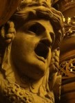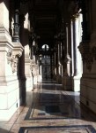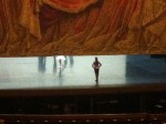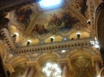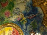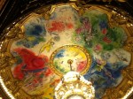 The ceiling around the chandelier in the amphitheatre, painted by Marc Chagall. I only got a few pics, because iPhone 4 just doesn’t do it justice. (Go here for more history and better pics.) The painting consists of 12 canvas panels and pays tribute to 14 different composers. Its muted colors are quite a contrast to the grandness of the rest of the design and architecture, but it works beautifully. (Understatement of the millennium.)
