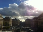 But inevitably, I’d have to walk up and down Avenue de l’Opéra to get my daily errands done, since it is my neighborhood. I’d notice the people just sitting on the steps in front of the Opera house, watching the world go by, and I noticed that they were both tourists and locals. One day, I sat down there myself and found that I really enjoyed watching all those people, from everywhere in the world or from just down the street on their lunch hours. Pretty soon, when I’d come home from wherever I’d been (inevitably on a bike), instead of parking my bike at the station on rue de Richelieu and Avenue de l’Opéra, I’d find myself riding up the incredibly busy Avenue to get a little closer to the Opera House, to feel the business of the street and of Paris. Somewhere in all those rides and walks and errands and people watching, Avenue de l’Opéra became another one of those icons (along with the arches by the Louvre) that make me feel like home. The heart of Paris is in the center of my neighborhood and the center of my heart. Which is probably why I took about 1000 pictures of the view from that balcony yesterday. And it’s also probably why I’m crying as I write this. (See? I told you. My god. WHAT IS WRONG WITH ME??)
