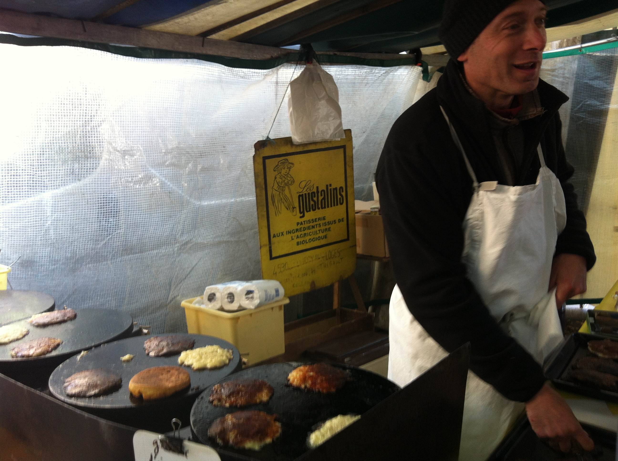 Onion gallette man from the Sunday marché Raspail (the only all-bio day). These are like crack, P.S.
